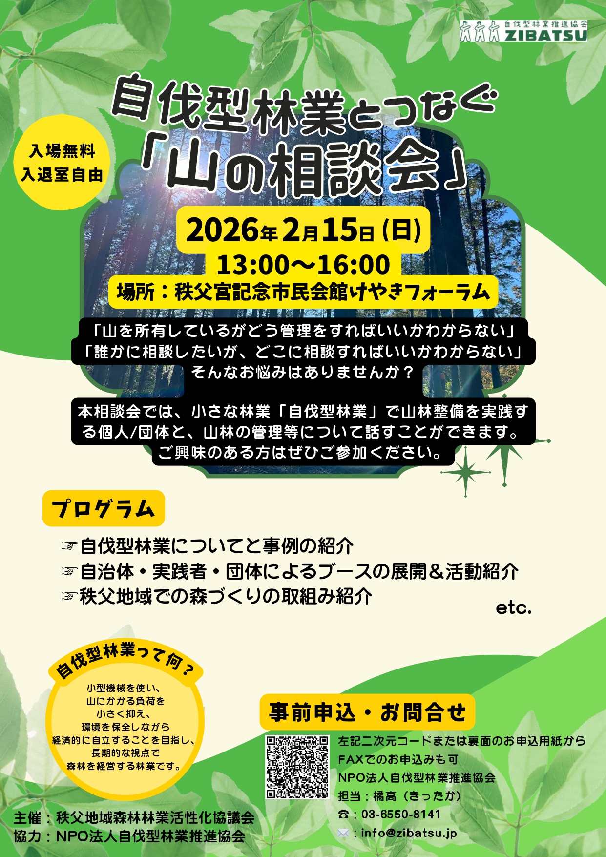 - 【2月13日〆】2/15日 自伐型林業とつなぐ「山の相談会」を開催@秩父