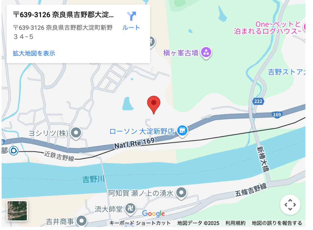 〒639-3126 奈良県吉野郡大淀町新野34-5