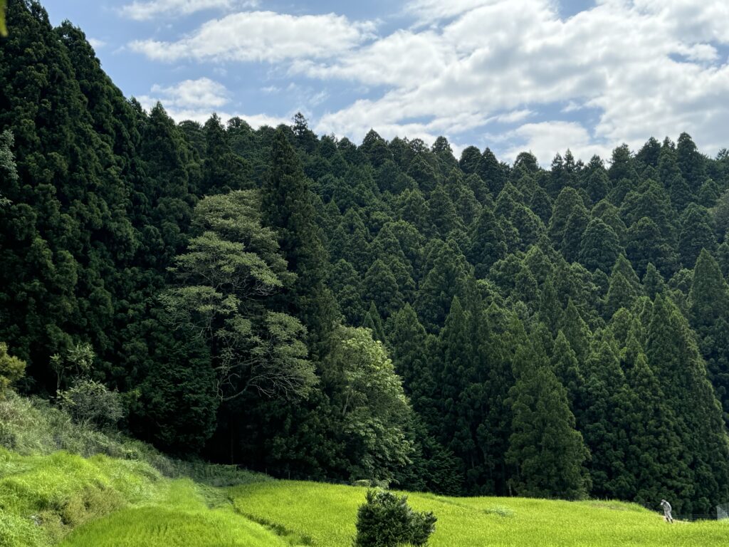林業と自然が調和する生物多様性豊かな里山と棚田の風景