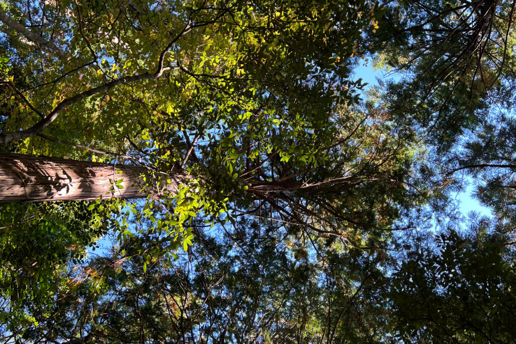 - 林冠が直射日光を遮り、乾燥を防ぐ